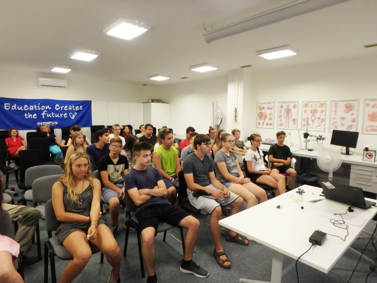 | イベント概要 | このイベントは、オリンパスと地域のJ.A. Komenský小中学校とのコラボレーションにより実現したもので、生徒向けに2日間で計4回の講義を行いました。オリンパスからは、社員の製品トレーニングも行う開発部門のエンジニア2名が講師役として参加し、オリンパスの医療用製品やその使い方について、生徒たちが楽しみながらその重要性を学べるよう説明しました。生徒たちの反応も良く興味深い様子で多くの質問が出ました。来年度は、地域の高校生向けに講義を行う予定です。 |