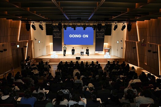 早期がん検診や治療技術の発達により、韓国国内のがん生存率は上昇しているものの、韓国社会ではがん患者やがんサバイバーの方々を十分に受け入れることが出来ていないのが現状です。韓国のオリンパスは、がんサバイバーの方の社会復帰を支援するため「Going-on」キャンペーンのプログラムを設計し運営しています。キャンペーン名は、がん診断後も美しい人生が続くことを意味しています。がんサバイバーの方を支援するためのプログラムには、「Going-on Diary」、「Going-on Concert」、「Going-on Walk」、「Going-on Studio」、「Going-on Talk」などがあります。