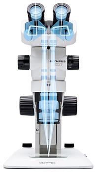 | 実体顕微鏡の光学系の種類で、傾斜角度をもった2つの独立した変倍光学系を配置したものです。実体顕微鏡の特徴である立体的な像を得やすく、コンパクトなボディー設計が可能です。 |