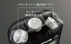 2つの高性能指向性ステレオマイクに加えて、低域を補強する無指向性のセンターマイクによる3マイクシステム「トレスミック」を開発。2マイクの録音周波数は70Hz~20000Hzですが、トレスミックの採用により3マイクでは20Hz~20000Hzの、より原音に近いフラットな録音周波数特性を実現。低音に厚みを持たせ、より広い音域を高音質に録音することが可能となりました。センターマイクはオン/オフの切り替えも可能です。